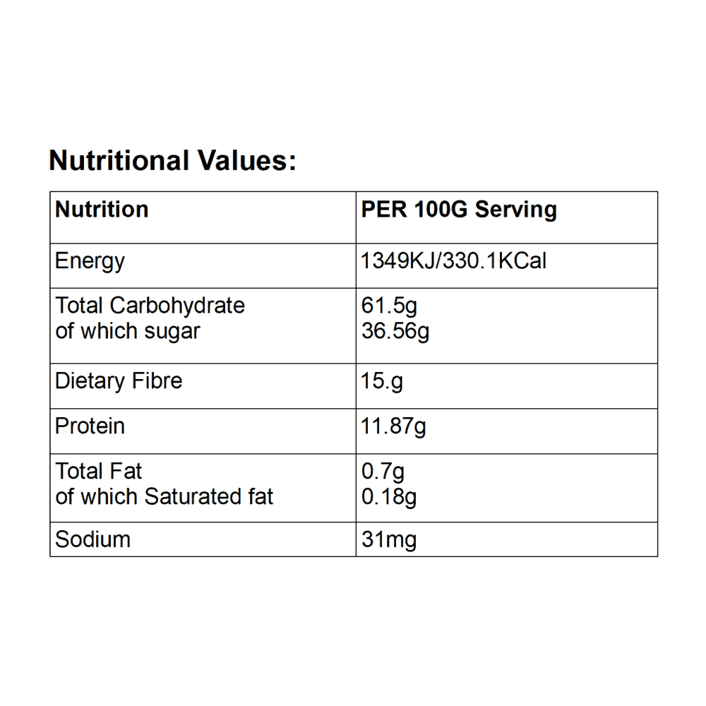 | Dietary Fibre | 15.1g |